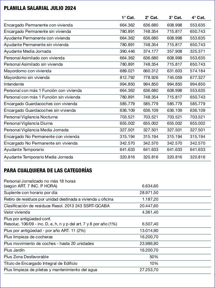 Las presentes planillas incluyen los montos salariales, plus y beneficios de las categorías vigentes en todo el país, para las trabajadoras y trabajadores de edificios incluidos en los CCT 589 y 590/10 correspondientes al mes de julio.