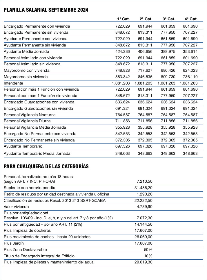 Las presentes planillas incluyen los montos salariales, plus y beneficios de las categorías vigentes en todo el país, para las trabajadoras y trabajadores de edificios incluidos en los CCT 589 y 590/10.